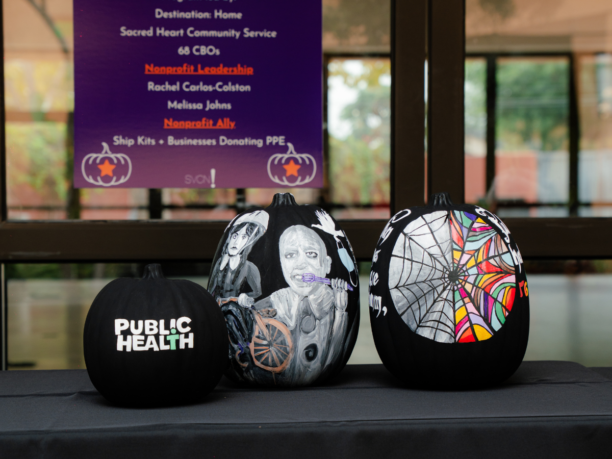 Celebrity Table Captains mingle with nonprofit staff and design pumpkins for